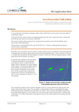 The SPx library scan conversion module provides an Application Programming Interface (API) to control the processing and presentation of the radar video. A small number of calls from the application software to the module are used to set-up and dynamically configure the operation. Changes to window size, scale or display presentation are effected in real-time, to help ensure that the radar component of the display stays synchronised to changes in the other graphics layers. Updates to the contents of the scan-converted bitmaps can be reported to the application software at a programmable rate through one of a number of software event mechanisms, or else the scan-converter can directly update the screen itself to semi-transparently blend the radar video with the graphics. Either way, SPx supports real-time sector-based updates of the radar display or else lower frequency (quadrant or scans) as needed.