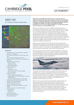 By combining ASD-100 with other Cambridge Pixel solutions, Air Defence Systems can be upgraded predominantly using software, making them cost-effective and future-proof. Existing (and expensive) front-end radar hardware can be retained. Support for standard ASTERIX data provides compatibility with other systems using these formats.