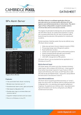 SPx Alarm Server is supported by an API, available in Cambridge Pixel’s C++ and .NET libraries, that provides full access to alarm configuration and triggered alarm state. This can be used by a client application to fully integrate alarm capability.