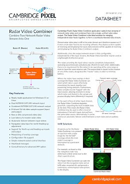 A typical use for the Radar Video Combiner is to present an operator with a radar image for the full 360° coverage where the main radar's coverage is interrupted by a persistent obstacle. For example on-board a ship the navigation radar may often have a blind sector due to the ship's superstructure. The Radar Video Combiner can take the video from the navigation radar and an infill radar, mounted aft, and present a continuous, uninterrupted radar picture to the display.